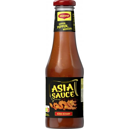 MAGGI Magic Asia Sauce süß-scharf passt ideal zu Gegrilltem, Reis sowie vielen Fleisch- und Fischgerichten. Du kannst mit der Asia Sauce auch Nudeln und Reissalate verfeinern. Lecker auch zum Dippen von knusprigen Frühlingsrollen und gebackenen Wan Tan, Hähnchen Dippers oder Chicken Nuggets.