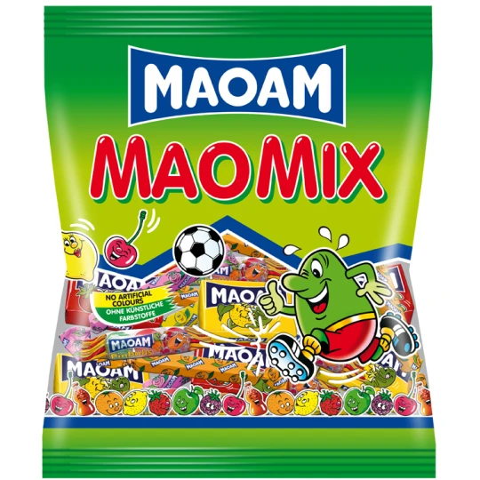 Das Multitalent. Die richtige Wahl für alle großen und kleinen MAOAM-Fans, die mehr Abwechslung beim Kaubonbon-Genuss möchten: Die einzigartige und unverwechselbare Kaubonbon-Mischung MAO Mix mit vier verschiedenen MAOAM-Produkten: Würfel, Pinballs, Stripes und ChewTwo – alle einzeln verpackt und daher ideal für jeden Anlass.